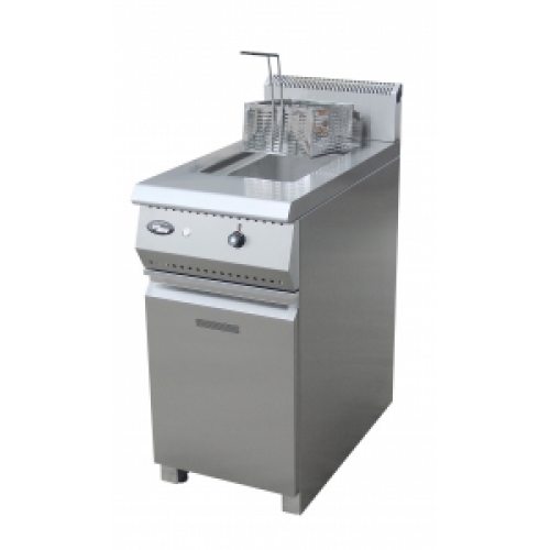 газовая фритюрница 800 линии на закрытом стенде, 1 фритюрная ванна max/раб 15/9 литров, 1 корзина, 1 специальная горелка, с электророзжигом, полный Газконтроль +, 1 газовый термостат плавно регулирующий температуру масла от +40-190С.