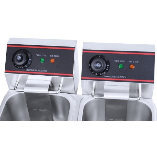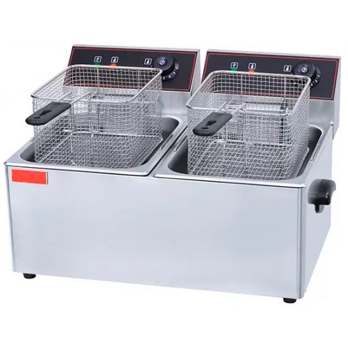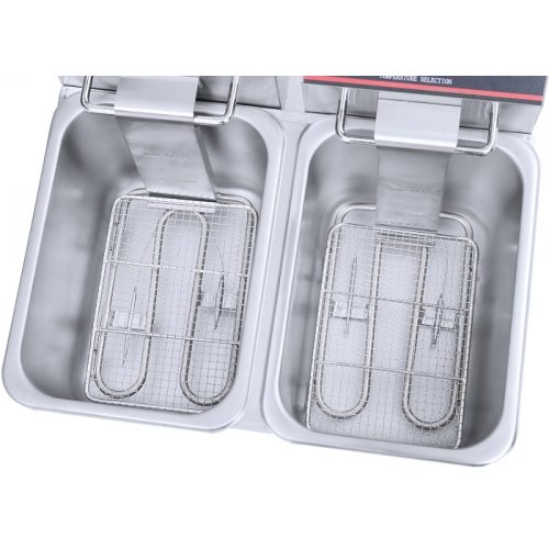 ОписаниеФритюрница Rosso HEF-11L-2 предназначена для установки в кухню ресторана и кафе формата фаст-фуд, в меню которых есть блюда, приготовленные во фритюре.В профессиональной фритюрнице Вы сможете готовить чипсы, картошку фри, различные виды пончиков, пирожков, а также мясные и рыбные блюда с хрустящей корочкой.ОсобенностиИндикатор работыАвтоматическое отключение по достижению заданной температурыАвтоматическое включение при понижении заданной температурыКрышка оборудования спроектирована для удержания тепла и сохранения чистоты.В комплект включена специальная корзина для жарки продуктов, нарезанных мелкими кусками. На ручке корзины есть крючок.ХарактеристикиКорпус из нерж сталиКоличество ванн 2Объем одной ванны 2х11 л(!) Советы по приготовлению продуктов с помощью фритюрницы• В одном литре масла за один раз можно приготовить максимум 200 граммов картофеля фри.• В связи с тем, что при погружении в масло продуктов из холодильной камеры масло очень быстро охлаждается, не закладывайте за один раз более 100 г продуктов. Для избавления от излишков льда на продуктах глубокой заморозки можно потрусить их над раковиной.• Если картофель фри вы готовите из свежего картофеля, рекомендуется вначале промыть ломтики картофеля в воде и для предотвращения попадания воды в масло, предварительно обсушить картофель.• Картофель фри рекомендуется жарить в 2 этапа. Первый этап (предварительная жарка): от 5 до 10 минут при температуре 170 ºС. Второй этап (окончательная жарка): от 2 до 4 минут при температуре 190 ºС.Таблица температур для жарки продуктовПродуктt жарки, °СКартофель (предварительная жарка)170Картофель (окончательная жарка)190Фондю пармезан170Сырные крокеты170Мясные/рыбные/картофельные крокеты190Рыба150Рыбные палочки180Сыр в сухарях180Пончики190Мясные крокеты190Курица160Жареные креветки180