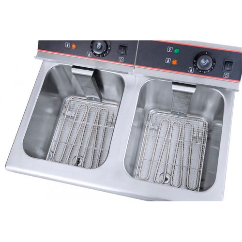ОписаниеФритюрница Rosso HEF-12L-2 предназначена для установки в кухню ресторана и кафе формата фаст-фуд, в меню которых есть блюда, приготовленные во фритюре.В профессиональной фритюрнице Вы сможете готовить чипсы, картошку фри, различные виды пончиков, пирожков, а также мясные и рыбные блюда с хрустящей корочкой.ОсобенностиИндикатор работыАвтоматическое отключение по достижению заданной температурыАвтоматическое включение при понижении заданной температурыКрышка оборудования спроектирована для удержания тепла и сохранения чистоты.В комплект включена специальная корзина для жарки продуктов, нарезанных мелкими кусками. На ручке корзины есть крючок.ХарактеристикиКорпус из нерж сталиКоличество ванн 2Объем одной ванны 2х12 л(!) Советы по приготовлению продуктов с помощью фритюрницы• В одном литре масла за один раз можно приготовить максимум 200 граммов картофеля фри.• В связи с тем, что при погружении в масло продуктов из холодильной камеры масло очень быстро охлаждается, не закладывайте за один раз более 100 г продуктов. Для избавления от излишков льда на продуктах глубокой заморозки можно потрусить их над раковиной.• Если картофель фри вы готовите из свежего картофеля, рекомендуется вначале промыть ломтики картофеля в воде и для предотвращения попадания воды в масло, предварительно обсушить картофель.• Картофель фри рекомендуется жарить в 2 этапа. Первый этап (предварительная жарка): от 5 до 10 минут при температуре 170 ºС. Второй этап (окончательная жарка): от 2 до 4 минут при температуре 190 ºС.Таблица температур для жарки продуктовПродуктt жарки, °СКартофель (предварительная жарка)170Картофель (окончательная жарка)190Фондю пармезан170Сырные крокеты170Мясные/рыбные/картофельные крокеты190Рыба150Рыбные палочки180Сыр в сухарях180Пончики190Мясные крокеты190Курица160Жареные креветки180