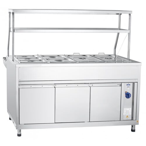 Электрический мармит кухонный предназначен для кратковременногохранения в горячем состоянии вторых блюд в функциональных емкостях ираздачи их потребителю.Характеристики:- нагрев горячим паром