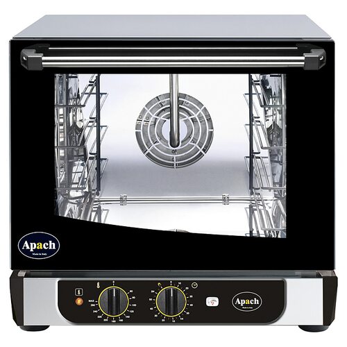 Конвекционная печь Apach AD44M предназначена для выпекания или разогрева кондитерских и хлебобулочных изделий, готовых блюд, замороженных или предварительно выдержанных в расстоечном шкафу заготовок из теста на предприятиях общественного питания и торговли. Подсветка камеры осуществляется галогеновой лампой. Камера легко чистится благодаря закругленным углам. Корпус выполнен из нержавеющей стали, дверца - из двойного закаленного стекла.В комплект поставки входят 4 листа для выпечки размером 470x340 мм.Рекомендуется дополнительно приобрести водоумягчитель и фильтр-систему для очистки и смягчения воды.Особенности: