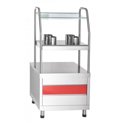 Прилавок для столовых приборов и подносов ПСПХ-70КМ с хлебницей предназначен для раздачи потребителям столовых приборов и подносов, а также хлеба.Характеристики:- 4 стакана для столовых приборов (произошло изменение дизайна емкостей для столовых приборов. См. Прилавки для столовых приборов и подносов ПСП: изменение в конструкции)