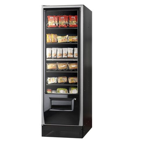 Итальянская торговая марка Saeco предлагает современную модель снековых автоматов Corallo 1830 Slave. Она способна работать в конфигурации со слейв-модулем, предназначенным для выдачи снеков. Аппарат оснащен несколькими вместительными полками, что позволяет загружать много товаров. Это помогает справиться с большим спросом в местах средней и высокой проходимости.Особенности моделиСнековый автомат Saeco Corallo 1830 Slave предназначен для реализации бутилированных напитков, сэндвичей, чипсов, сухариков, шоколадок, батончиков, йогурта и т.д. Вендинговый аппарат имеет раздельную настройку температуры.Для продуктов с минимальными требованиями к условиям хранения устанавливается на верхних полках температура в пределах от +7°С до +14°С. Товары, которые нуждаются в особых условиях температурного режима, располагаются на нижних полках, где можно программировать температуру от +1°С до +4°С.Набор функцийВ торговом аппарате продукция помещается в лотки, расположенные на соответствующих полках. Каждый лоток оснащен спиралью, при помощи которой продукты перемещаются в окошко выдачи покупателям. Конфигурацию спиралей необходимо уточнять перед покупкой вендингового автомата.Программное управление Corallo 1830 Slave предоставляет возможность регулировать температуру, задавать время автоматической разморозки камеры, вести учет проданных товаров, а также отображать сообщения для пользователей на экране. Меню автомата русифицировано, что значительно упрощает его использование и обслуживание.ПараметрыГабариты (мм) ШxВxД600 х 1830 х 900Вес,кг215Пиковая мощность, Вт600Автоматическое вкл/выклДаМатериал корпусаСтальЦветЧерный, серебристыйРегулируемая температураДиапазон температуры верхних полок7°C - 14°CДиапазон температуры нижних полок1°C – 4°CКонфигурация полокКоличество выдвижных полок6-7Количество спиралей33-42Внешний вид и дизайнерские решенияИтальянский дизайн, приятное оформление, интуитивно понятная архитектура.Корпус выполнен из высокопрочной стали, установлен сейфовый замок и антивандальные петли, надежно защищающие автомат от проникновенияКонструкция лотка выдачи товара защищает продукцию от хищенияХорошие возможности для индивидуального брендированияТехнологии и инновацииВозможность быстрой самостоятельной модификации высоты и ширины ячейкиРегулируема высота поддонаи особенностиКоличество полок 6-7; Количество спиралей 33-42; Количество продуктов в ячейке от 6 до 27Температурный режим 7-14°С верхние полки; 1-4°С нижние полкиСенсор подачи товара, выдачу товара контролируют фотоэлементы