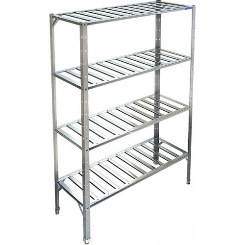 Стеллаж кухонныйТехно-ТТ СТР- 014/604предназначен для хранения посуды, различного инвентаря и сухих продуктов на предприятиях общественного питания и торговли.ОсобенностиСтеллаж технологический разборный, стойки из уголка 40х40 нержавеющей стали марки AISI 304 толщиной 2мм. Четыре решетчатые полки из нержавеющей стали марки AISI 304 толщиной 0,8мм. Расстояние между полками регулируемое с шагом 50мм. Регулируемые опоры. Стеллаж поставляется в разобранном виде.