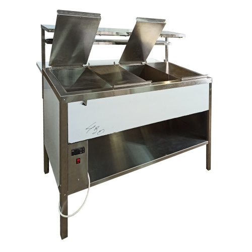 Стол ШСМ-4 - мармит вторых блюд с размером ванны на 4 гастроемкости GN 1/1, предназначен для использования в заведениях общественного питания, работающих по системе самообслуживания: