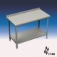 Стол рабочий усиленный с ножками из профильной трубы, один борт, сплошная полка, конструкция разборная, нержавеющая сталь. Ножки регулируются по высоте. Столешница усилена ДСП. Максимальная распределенная нагрузка на столешницу 130кг, на полку – 60 кг.