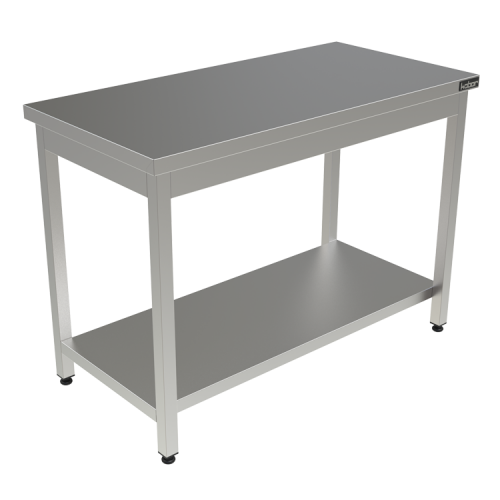 Особенности:- столешница нерж. сталь aisi 430,- усиление ЛДСП,- каркас нерж. труба 40х40,- полка сплошная,- без борта,- разборный