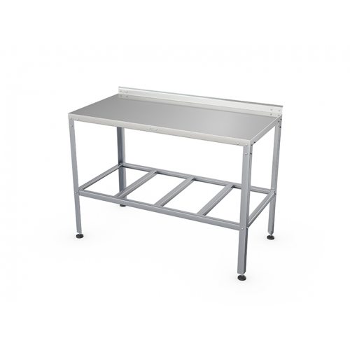 - Наличие борта позволяет располагать стол вдоль стены, исключая попадание остатков обрабатываемой продукции на пол, что значительно упрощает уборку помещения