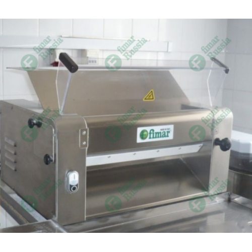 Тестораскаточная машина Fimar SI/520 220В - профессиональное оборудование для тонкой раскатки теста. Она раскатывает тесто для пиццы, лепешек, яичное для лапши и другие виды. Раскатка теста при помощи машины происходит не только быстрее, но и качественнее. Из машины выходит пласт одинаковой толщины по всей его площади.Тестораскатки Fimar имеют функцию выбора толщины раскатываемого теста. Регулировка происходит при помощи ручки. Это необходимо, ведь для пиццы, лепешек, слоеных пирожков или пирожных нужны тестовые заготовки разной толщины. К тестораскаточной машине прилагаются специальные насадки, которые разрезают кусок на полоски разной ширины для изготовления лапши.Данная модель тестораскатки электрическая. Для безопасности персонала на валиках оборудования есть предохранительный микровыключатель, который отключает машину при открытии крышки валков во время работы техники. Наибольшая ширина раскатываемого теста составляет 50 см. Корпус и валки машины сделаны из нержавеющей стали. Это надежный агрегат. Итальянский производитель создал надежный и практичный аппарат, простой в использовании и безопасный.